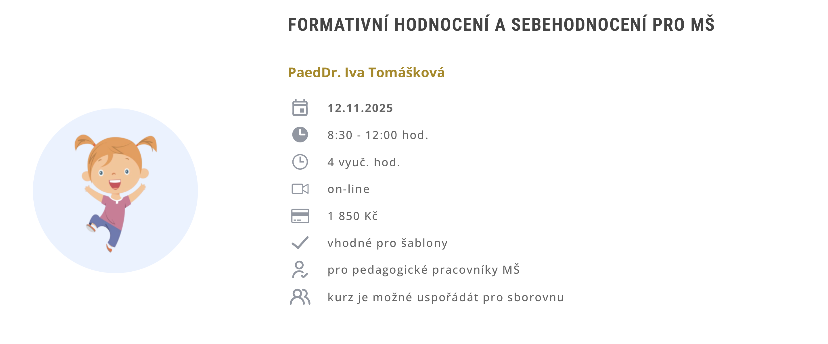 → pro pedagogické pracovníky MŠ, kurz je možné uspořádát pro sborovnu