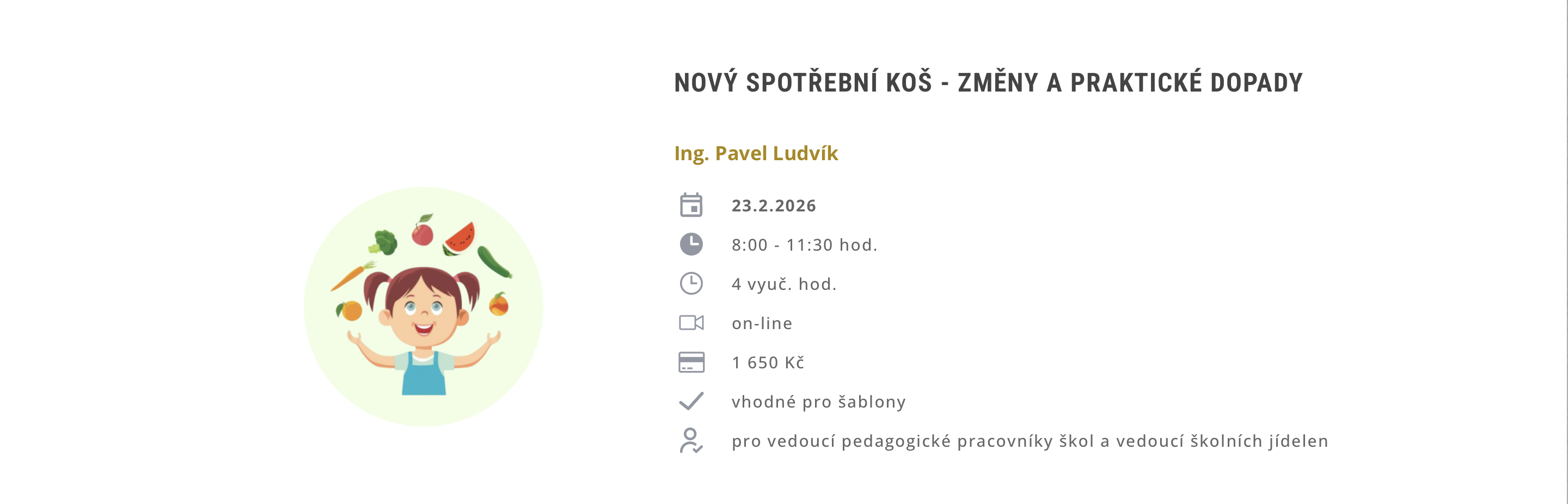 Součástí webináře bude i podrobný rozbor ustanovení o donášce vlastní stravy a představení možností, jak toto kontroverzní pravidlo prakticky realizovat. Na webináři vám ukážeme, jaké organizační dopady budou tyto změny mít, jak se na ně postupně připravovat a přinese praktické zkušenosti, jak motivovat strávníky, aby všechny novinky přijali.